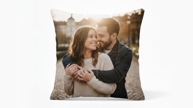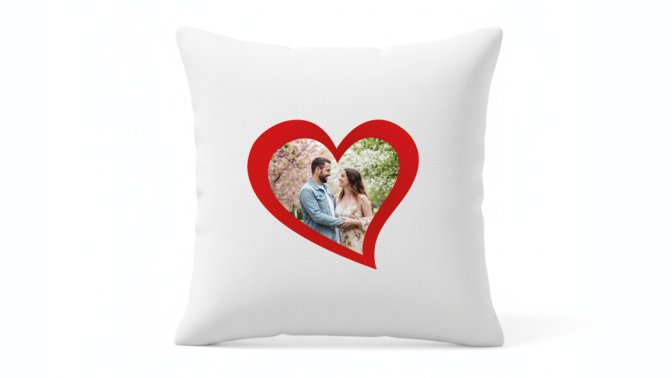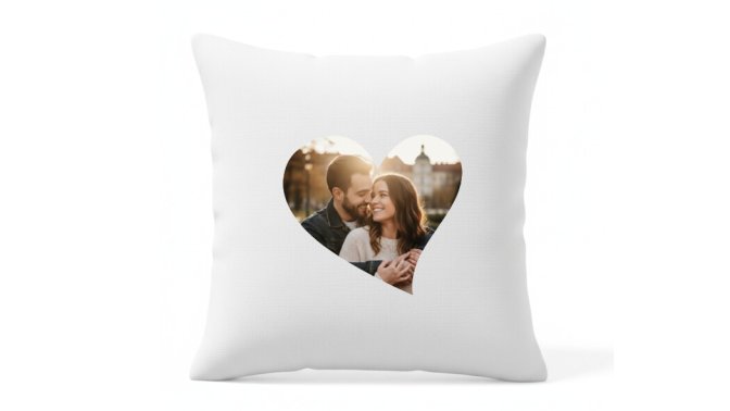 Polštář bílé barvy o velikosti 40x40cm s vaší fotografií ve tvaru srdce.…