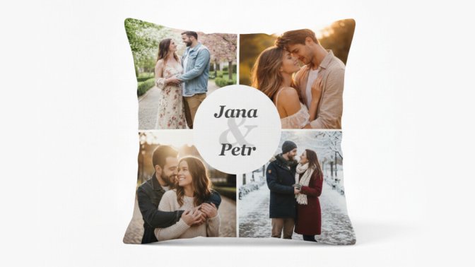 Polštář bílé barvy o velikosti 40x40cm se 4 fotografiemi a s možností…